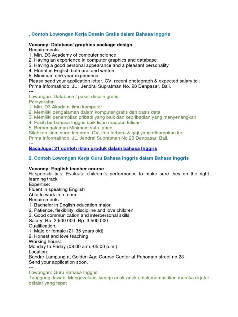21 contoh iklan produk dalam bahasa inggris surat . Lowongan kerja lampung / kak tolong buatin surat . 31 contoh surat lamaran kerja bahasa inggris dan artinya lengkap . Berikut ini adalah contoh surat lamaran pekerjaan bahasa inggris berdasarkan iklan dan . Mampu menganalisis pasar dan melihat peluang.